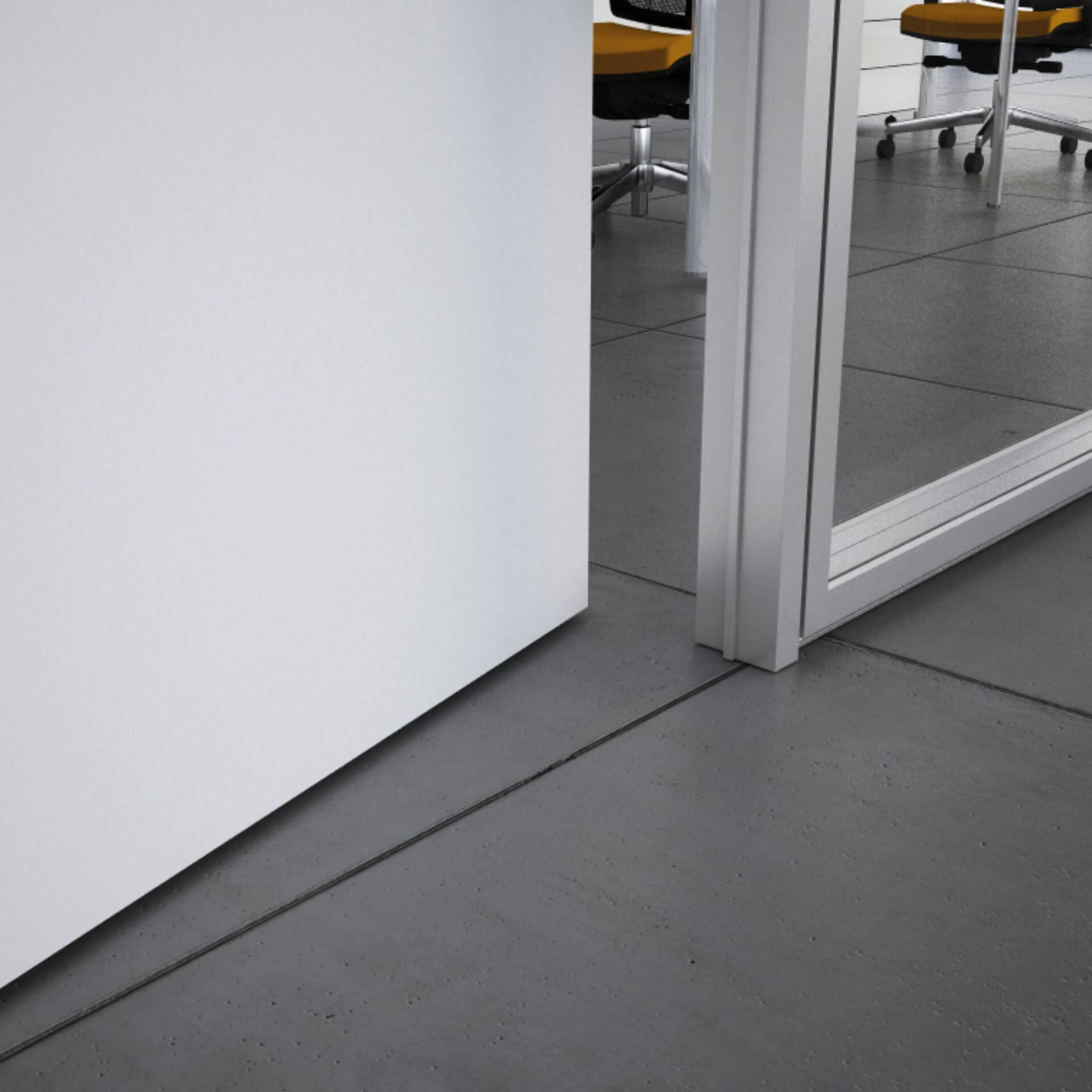IDEA partition wall has a finished thickness of 104 mm. Standard finishes ready in stock: GR gray, AV ivory, BC white, SL silver, RC light oak, RG gray oak, Wengè WG, AC maple. IDEA wall system fits perfectly with PROXIMA wall systems and ESSENTIA partition walls.