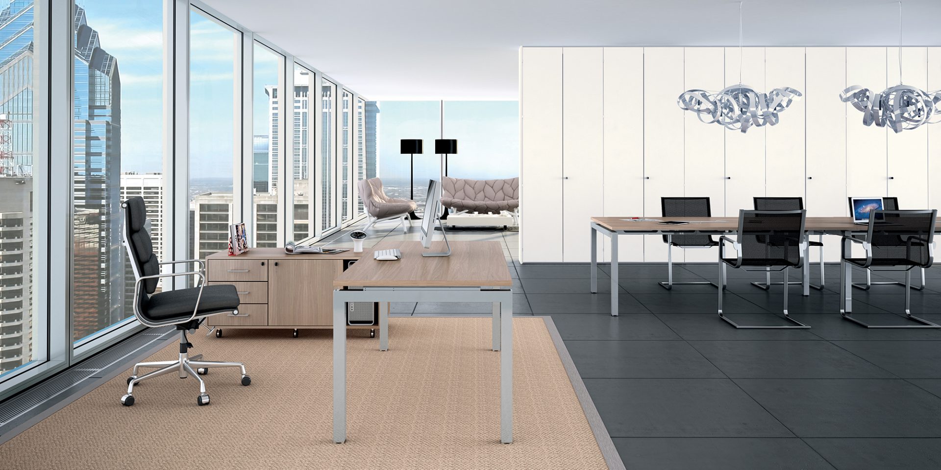 Standard finishes ready in stock: GR gray, AV ivory, BC white, SL silver, light oak RC, gray oak RG, Wengè WG and maple AC. PROXIMA fits perfectly with ESSENTIA, IDEA and WALL GAMES partition walls.